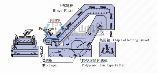 ●200目濾過網多形ローラーフィルターで冷卻液を濾過する